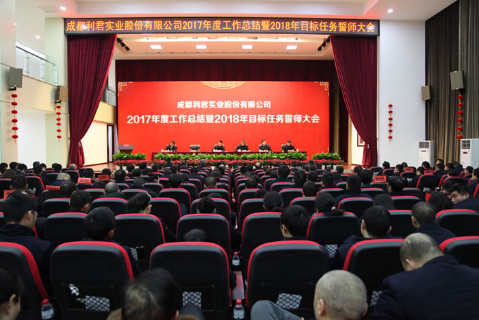 2018年2月9日,成都利君實業股份有限公司在成都市龍泉驛區利君科技公司員工禮堂組織召開了2017年度工作總結暨2018年目標任務誓師大會。