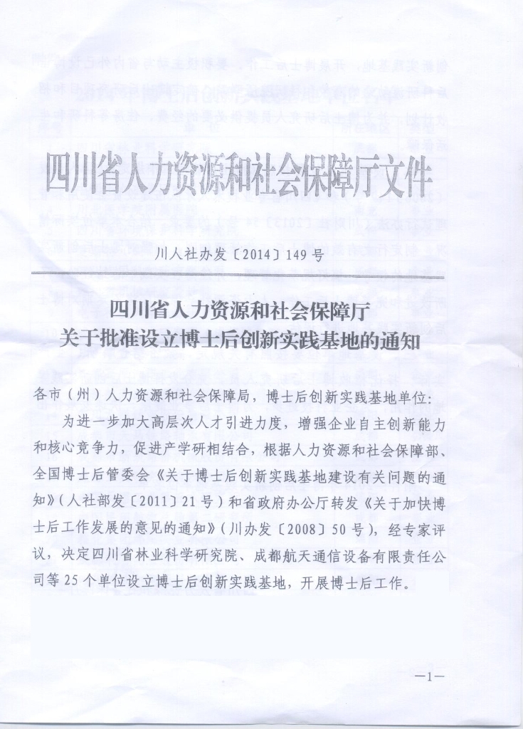 公司于2014年6月30日獲得四川省人力資源和社會保障廳批準(zhǔn)的博士后創(chuàng)新實踐基地。