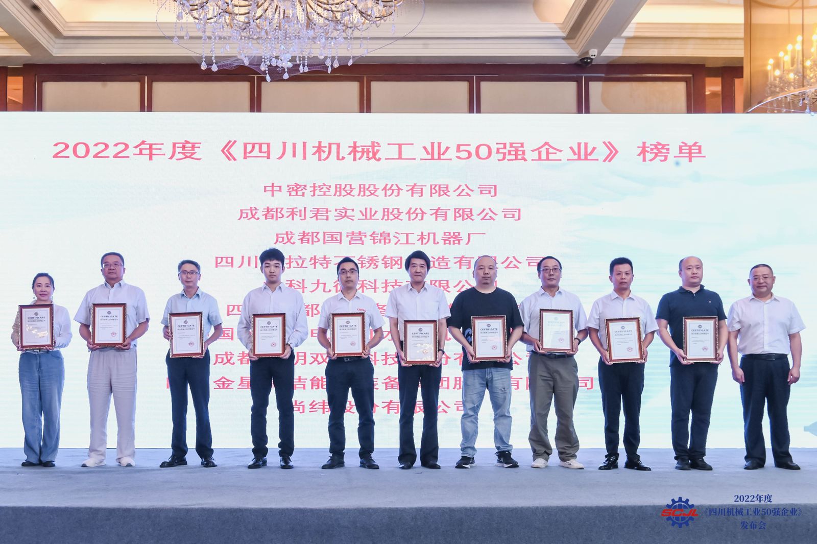 9月21日,四川省機械工業聯合會發布“2022年度四川機械工業50強企業”榜單,成都利君實業股份有限公司上榜。