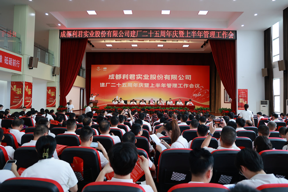 2024年6月21日,成都利君實業股份有限公司在成都市龍泉驛區成都利君科技有限責任公司員工禮堂舉行公司建廠二十五周年慶暨2024年上半年管理工作會議